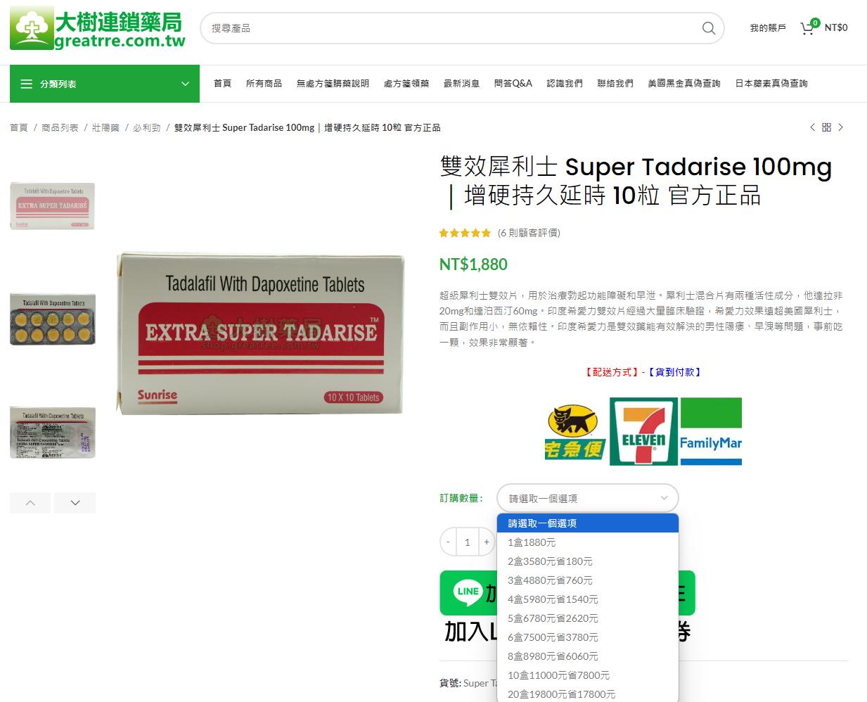 知名連鎖藥局(如丁丁藥局、大樹藥局、安德藥局等)通常提供穩定的價格,雙效犀利士售價約為2150元/盒,均價約215元/顆。連鎖藥局價格透明、品質有保障,並且經常推出會員優惠活動,適合重視品牌和便利性的消費者。
